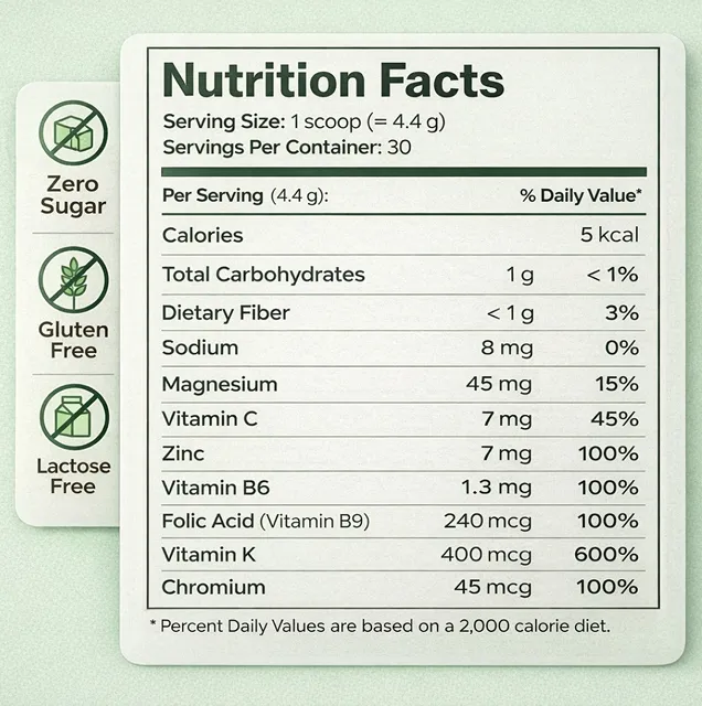 Packed with vitamins, minerals, and chlorophyll for daily vitality.